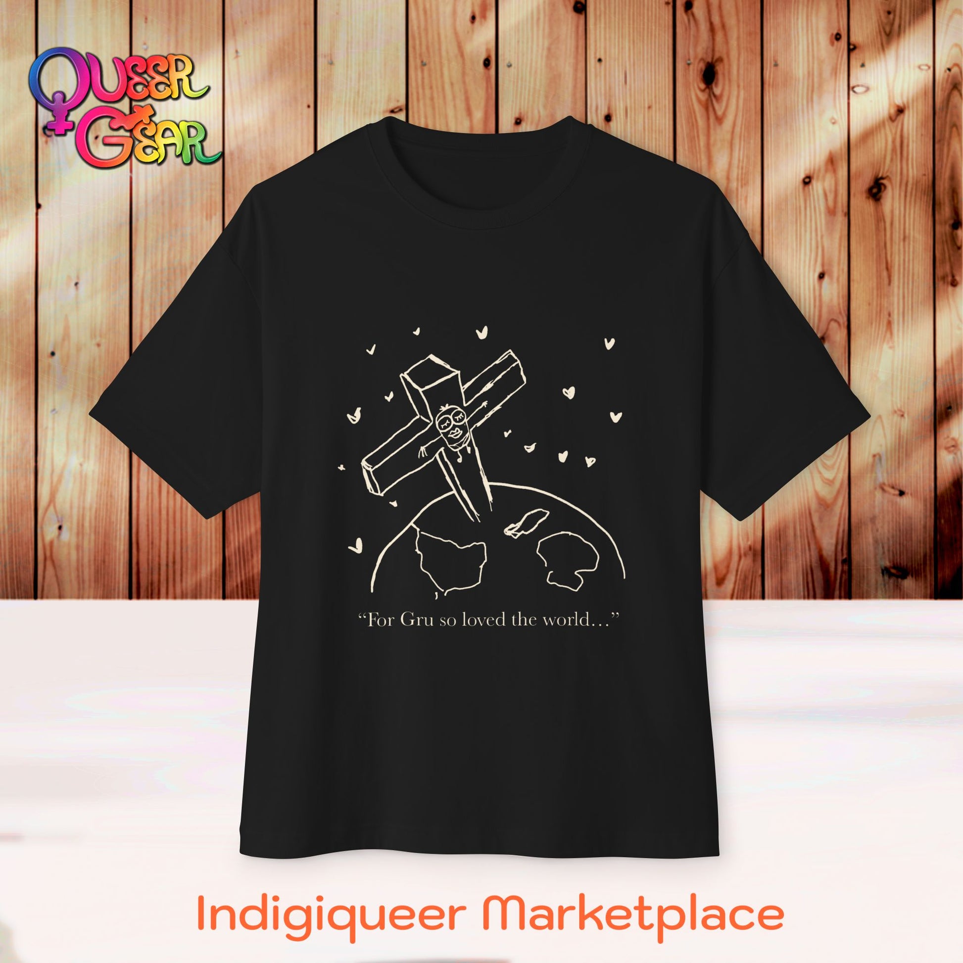 Crucified minion Cross Earth Sketch Tee - "For Gru so loved the world..." Oversized T-Shirt